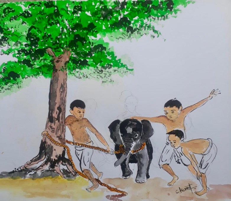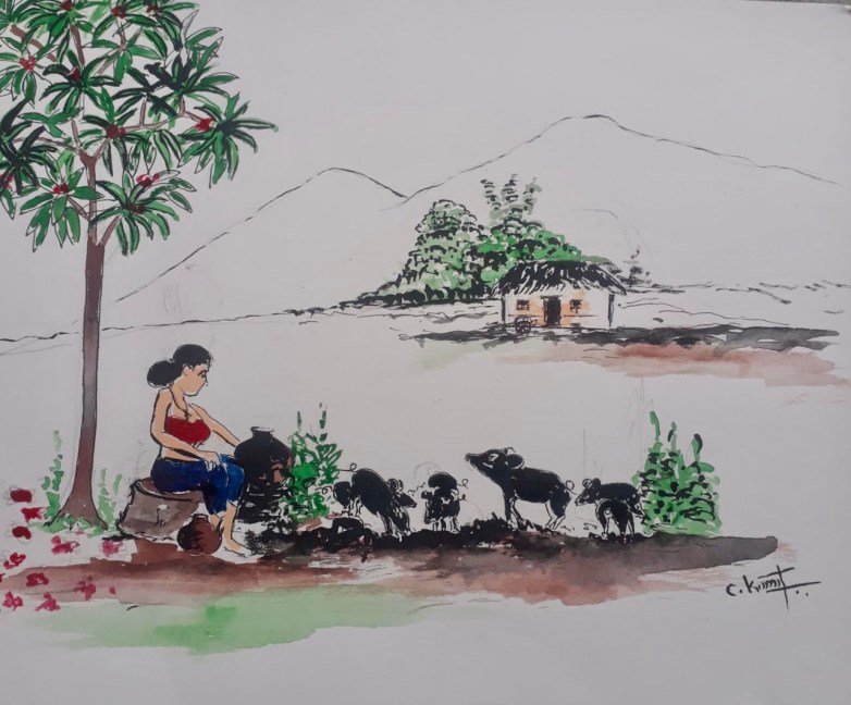 நன்றி- ஓவியம்: திரு. செ. கிருஷ்ணன், இந்திய வனப் பணி (ஓய்வு)